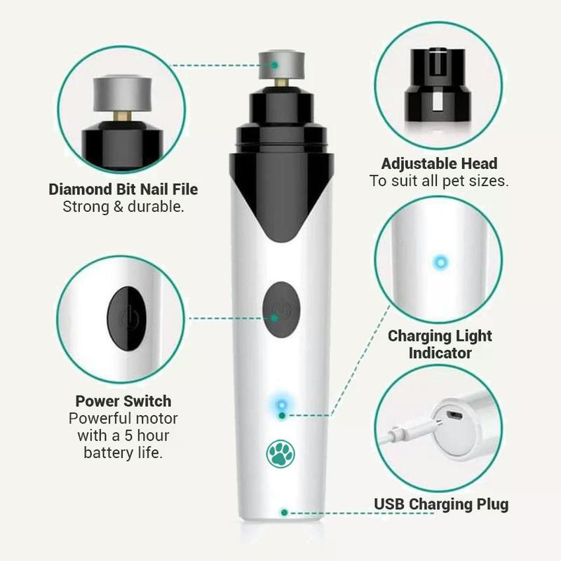 PawPal™ nail trimmer outperforms other models on many levels. It has a significantly lower noise level that does not startle dogs. It also features a diamond bit head, longer operating time, 3 size settings and ultra low vibration making it suitable for sensitive dogs. See table for a full comparison.